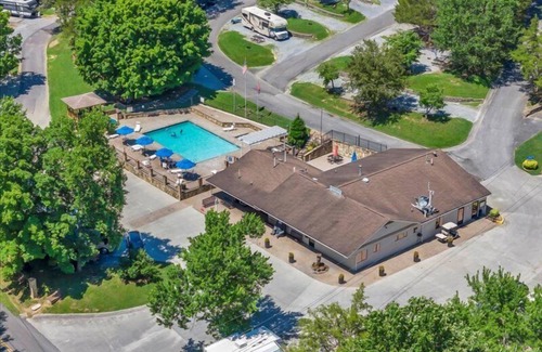 Welcome to your ultimate retreat at this charming 2-bedroom park model home, nestled within the picturesque landscape of Gateway RV Campground in Pigeon Forge, Tennessee. Inside, you'll find a cozy haven thoughtfully designed for your comfort. The home features a queen-size bed in one bedroom and a full-size bed in the other, ensuring a restful night's sleep for all guests. Additionally, the cabin can accommodate up to 6 guests comfortably.