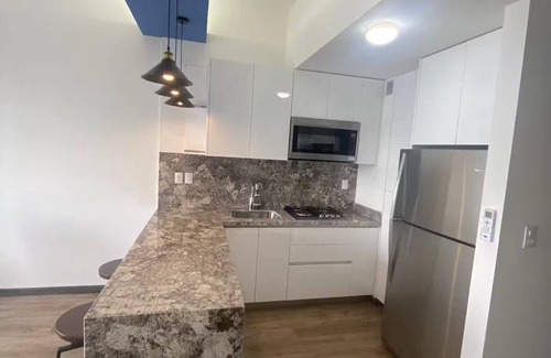 New apartment, very comfortable that includes 2 bedrooms the main one with a bed who, and its own bathroom and high school with a single kangaroo bed, where 2 people can stay comfortably and secondary bathroom in front of the bedroom, the apartment has 1 balcony with a good view from the 20th floor towards the north of the city!!