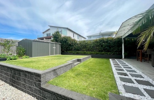 The garden is private and landscaped with a built-in bbq area to enjoy
