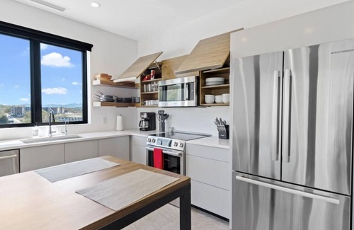 Stunning views, outdoor space (with infrared heaters!) & contemporary design define this sun-soaked, conveniently located condo in downtown Asheville. Features two bedrooms, each w/private bath & 1 King, 1 Queen bed + queen sleeper sofa. Perfectly located on Biltmore Ave, close to shopping, dining, breweries, galleries, live music & more. Short drive to Biltmore Estate & other attractions. Check out local recommendations & favorite restaurants. 1 parking spot in onsite garage, fits vehicle no larger than a Tahoe. The pet fee for this pet-friendly unit is $75 plus tax and must be paid before arrival.