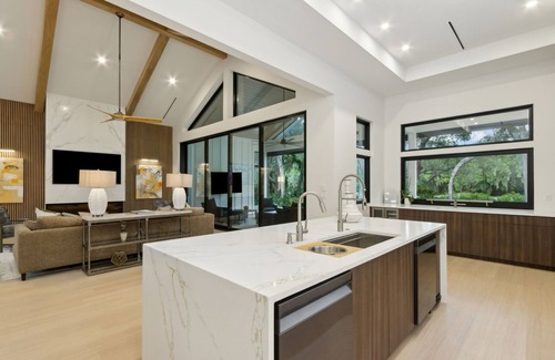 Relax in total privacy at this modern home on the Omni resort golf course. With 3 bedrooms, 3.5 baths, a pool, sauna, gym, and golf cart, it’s your private retreat. Entertain in the spacious kitchen or grill by the pool with sunset views and outdoor TVs. The primary suite features golf views and a spa bath; two more bedrooms have ensuite baths. There’s also a quiet office. Weekly housekeeping and all essentials included—just pack your bags and enjoy the getaway.