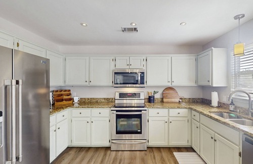 Welcome to your perfect getaway in Savannah, GA! This charming house is designed for families and friends seeking a blend of adventure and relaxation. With a spacious layout featuring multiple levels, this home comfortably accommodates everyone, offering a king bed, queen bed, double bed, twin bed, and even a bunk bed for the kids. Enjoy the convenience of modern amenities including central AC, WiFi, and a fully equipped kitchen with a fridge, stove, oven, and dishwasher.