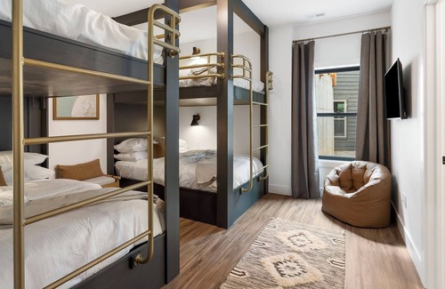 Your whole crew will be ready for a day of adventure knowing they got the rest and recovery needed in one of the 5 modern styled bedrooms. Each has their own ensuite bathroom and TV’s providing your guests with the privacy they need. There are 3 king bedrooms, 1 double queen bedroom, and 1 custom built bunk room with 4 full sized beds, all with premium mattresses and bedding. Additionally, there's a convenient half bath in the common area upstairs that is its own little retreat.