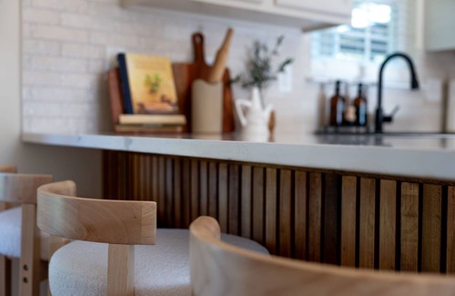 3 Smart TVs with streaming access. Fully equipped kitchen with modern appliances, coffee essentials, and generously stocked cookware, bakeware, and serving essentials.