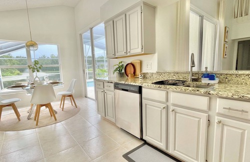 Welcome to our exquisite listing in Kissimmee! Conveniently located near themed parks, shops, plazas, and everything! This spacious luxury home offers a beautiful lake view in a peaceful neighborhood. Just under 15 minutes from Walt Disney World, it features luxury interior decor, top-notch amenities, and a refreshing private pool. The property can accommodate up to 8 people. Enjoy stunning sunsets and the perfect Floridian weather. Book now for an unforgettable stay!