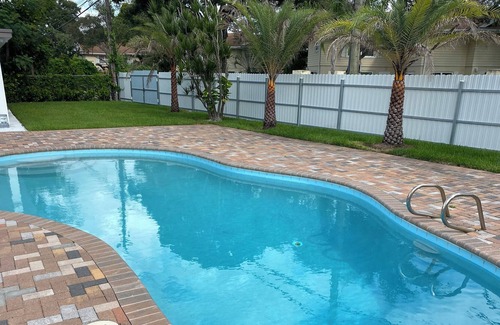 Beautifully home with a private pool and spacious backyard in a quiet and friendly neighborhood. 3 bedrooms, 2 full baths, outdoor, very spacious living room, large backyard with BBQ, Beautifull palm tree and mango tree this outdoor space is perfect for enjoy the nature drink a cup of wine and just relax.