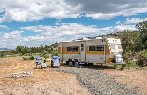 This quaint, charming, vintage Layton RV is comfy cozy, with the original character of the pull-behind vacation home on wheels your grandparents enjoyed! It includes a king-size bed, dining table, kitchen with cooktop and oven, microwave and ample refrigerator space.The campsite and travel trailer is located just above a small but beautiful running creek. The site has stunning views of the Highland Mountains. The mountains, the sky, and our 100 acres of interesting hiking right across the road makes it a unique property. Located on MT Hwy 2, it is quiet but convenient to the town of Whitehall, 8 miles away, where there is a grocery, an old time breakfast diner (K-Bar) and also for lunch or dinner great Montana burgers, sandwiches, salads, homemade buns, chips, and salad dressings, and full steak dinners at a rustic saloon (Two-Bit Saloon). If you want fresh pizza, with regular and gluten-free crust options, Whitehall has that too. Up the road a half hour are two great higher end restaurants, famous La Hood and Three Forks Brewery.WHAT TO EXPECT