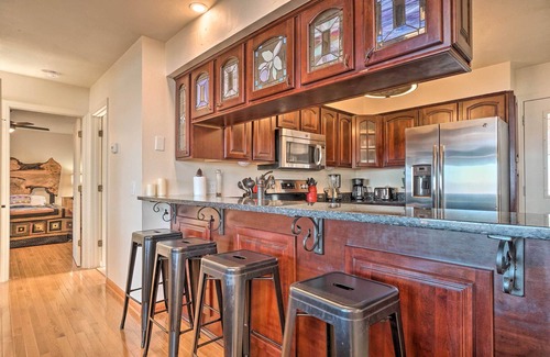 HOME FEATURES: 7 Smart TVs, great room w/ wood-burning fireplace, dining table w/ chandelier, books, board games, skylights, hardwood floors, artistic & upscale mountain decor