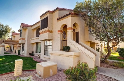 If you are looking for an AMAZING location, that is safe and secure, with mountain views and gorgeous sunsets to watch from your deck... then this is the place for you! Gorgeous, well groomed, magical Scottsdale Racquet Club!! Grounds located off Mountainview Road in Center of Scottsdale is a gated community that gives you the feeling of security as well as an active community. Restaurants, golf clubs and mountain climbing are numerous and easy to get to from this location. Whether you're a travelling professional or a visitor here to enjoy all that sunny Arizona has to offer, this location is perfect for you. Once you return home, the gated community offers security while the complex provides the luxury with 5 pools, 6 spas, a workout facility, 9 tennis courts (2 are grass) and Pickleball too! An assigned parking spot right outside your unit along with a keypad entry helps make your stay ultra convenient. Queen beds in each tranquil bedroom, both with recently updated bathrooms, an open layout, a fully equipped kitchen, washer and dryer in unit and an extra large deck that overlooks the best location in the complex! A heated pool and jacuzzi area, and workout facility are included in the list of luxury amenities. This is a fantastic place to stay!