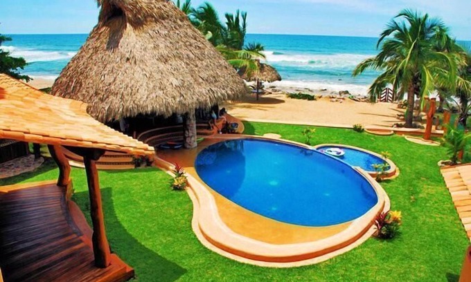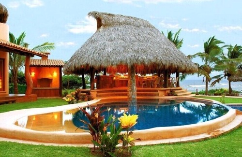 Casa Luna del Mar is a luxurious beachfront home that has been created with love, imagination and good taste offering calm, harmony and comfort. Private pool, beach with hammocks and resting chairs, open air kitchen overlooking the ocean, 5 suites and 2 Bungalows merging into the wonderful and unique natural place of Troncones.