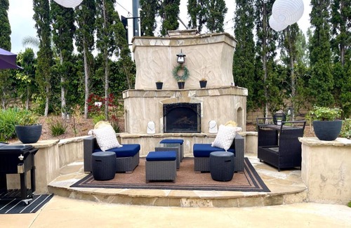 The Most Excellent Vacation Location! Bring your family and enjoy Sunny San Diego in our large 5 bedroom (plus office), 5 bathroom vacation retreat. Whether you have come to surf, tan on the sand, jet ski, check out local shops, golf, or go to the Zoo or Legoland with the whole family, this delightful home is perfect for a coastal adventure. You may find it hard to leave the comforts of this spacious resort-style home. The beautifully designed resort-style backyard features a large pool and attached heated jacuzzi. In addition to the water fun, the private backyard also features a spacious lawn for corn hole and other games, an outdoor fireplace, a built-in Viking BBQ that is hooked up and ready for grilling, an outdoor bar sink as well as an outdoor refrigerator. There is plenty of seating and lounging space for tanning plus a huge table for outdoor dining. This family retreat combines a love of the outdoors with luxury to create an environment that captures the very best of Southern California living. The home includes beach towels, linens, washer/dryer, and 5 bedrooms plus an office, accommodating 12 comfortably. Spend the day at the beach and feel free to use our boogie boards, beach chairs, coolers, umbrellas, and sand toys. Moonlight and Ponto beaches are a quick 6 minute drive; shopping and award-winning golf is a quick 5 minute drive. The location is 15 minutes from Legoland and 30 minutes away from the world famous San Diego Zoo, SeaWorld, Balboa Park, Gaslamp district, San Diego Airport and so much more! The evening lights and lovely amenities are perfect for a family or intimate retreat!