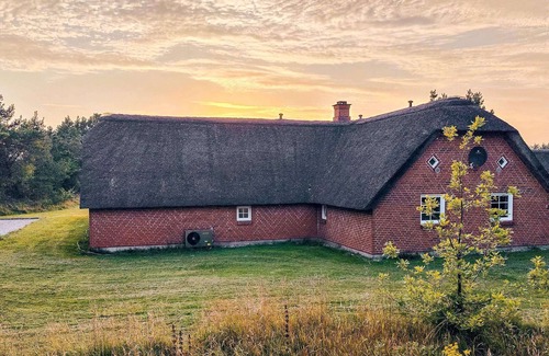 Thatched holiday cottage built in the typical dune house style approx. 1600 m from the North Sea. The house was renovated in 2016 and is very child-friendly with separate children's playroom with its own TV, DVD player and satellite and exciting toys and LEGO. The house also includes a whirlpool and sauna. There are swings, sandpit, football goal, petanque as well as beach volley and badminton net. There are 2 cots, 2 high chairs and a baby bath. The pool area is large and spacious. 18 m² pool with counter current system and slide and a small children's pool. 5-person whirlpool for relaxation and well-being. The pool area has one of the three bathrooms, which offers direct access to the sauna. From the pool area as well as from the living room there is access to large, enclosed patio where you can enjoy the sun in private. The house is furnished with two separate sections, each with 3 bedrooms and a bathroom. A total of 4 bedrooms with double beds and 20" flat screen TV on the wall and 2 bedrooms each with two single beds and a TV connected to the PlayStation2. All rooms have wooden floors. Large kitchen with much closet space. Large fridge and large freezer, built-in ceramic hob and integrated oven. Tile floor in living room and kitchen. The large flat screen TV in the living room and TV in all 4 bedrooms can all receive Danish television channels. High-speed internet 100/100 Mbit/s. Large and spacious living area with ample space for 12 people. There is ironing board and iron. There is aircondition for a good indoor climate. The large patio is perfect for relaxation, sunbathing and cosy barbecues. The 5100 m² plot offers excellent opportunities for outdoor activities. There is a small football field with 2 goals and there is also the option of a game of volleyball/badminton or petanque. For younger children there is a play set and swings and a sandpit. No letting to youth groups.A refundable deposit might be charged closer to your check-in date. The security deposit ensures a smooth stay and covers any additional services or consumption charges.This deposit covers utilities consumed during your stay and any additional services that may be taken.The final amount will be adjusted based on actual meter readings, actual usage of extra services, and any remaining balance will be refunded within 21 days after checkout.This deposit simply acts as a prepayment for charges that you would anyways pay for, ensuring a seamless stay and check-out experience.