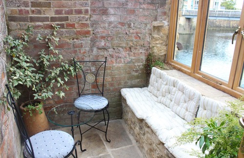 It is the most spacious of the Folly Bridge apartments. It has its own front door and a small private conservatory for outside dining or reclining, fishing or catching crayfish. On winter days you can lounge inside on the love-seat in the sun, reading your book, gazing downstream. Our new wharf allows you to take Gerry's Ferry upstream to the Port Meadow and the ruins of Godstown nunnery or downstream to the Isis pub and Iffley.