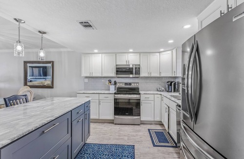 This fantastic condo offers all the comforts of home, including WiFi, cable, a hair dryer, board games, books, a full-size washer/dryer, and supplied linens. Beach essentials are also provided and include beach chairs, toys, towels, an umbrella, boogie boards, a cooler, and a beach cart to easily transport everything to the shore.