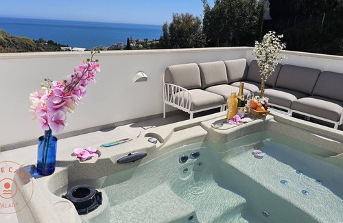 New in our Take Care Malaga collection!This luxury villa with amazing sea view in Torrox is the perfect destination for a wonderful luxury holiday. The villa has three bedrooms with a double bed, three bathrooms, a spacious salon, equipped open kitchen, and, besides a patio and several balconies, a lovely outdoor space with a swimming pool, looking out onto the sea. Each bedroom also has large sliding windows to enjoy the views of the mountains and sea.On top of that, you can relax in the jacuzzi on one of the upper terraces with sea view.The house has several floors, but because there is an elevator in the house, the house is wheelchair accessible.Things to note:We offer our own taxi service from the airport to your accommodation and/or from your accommodation to the airport. The payment can be done to the driver in cash or by card.If you wish to make use of this offer let us know after making your reservation.Check in between 15:00 and 19:00.Check out until 11:00.