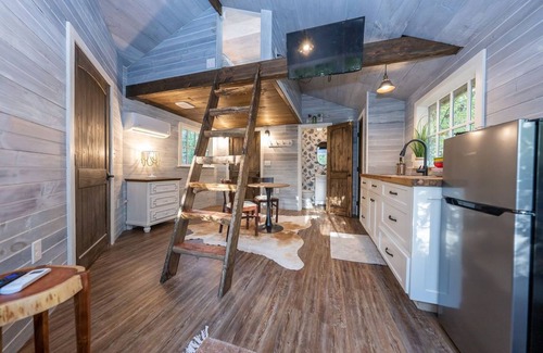 Gorgeous Treehouse soaring 15 feet above ground! Enjoy the sounds of nature when you stay in this unique space. Built by hand, every inch is meticulously curated by the owner himself. Nestled on the banks of the Rivanna River, this is a TRUE treehouse, suspended in a grove of Sycamore and Poplar trees. Panoramic windows, high end furnishings and every comfort you're looking for. Sit outside on the wrap-around porch, surrounded by leaves. We're sure you'll have an incredible stay!