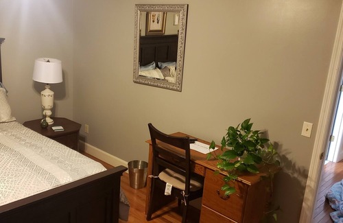 On entering, you will absolutely fall in love with this charming, spacious home. Two lovely rooms with queen beds and one bathroom are available to the renter. There is a half bathroom downstairs.