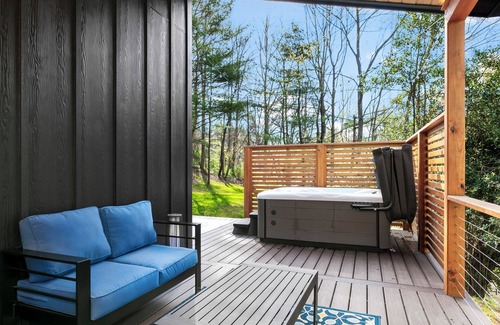 Enjoy an Amazing Experience at This Centrally Located Stylish Home on a private one acre lot - 15 minutes from Airport, The Biltmore Estate, Blue Ridge Parkway and downtown Asheville - King bed - Full kitchen - modern appliances - Hot tub for relaxation under the stars - fire pit - Outdoor grill - EV charger - Washer and dryer - Great for couples looking for a romantic getaway. Experience luxury, privacy, and convenience in this stylish Asheville retreat. Book now for an unforgettable stay!