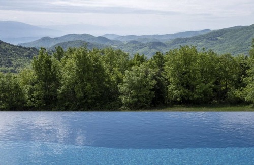 Villa Santa, perched on top of Monte Santa Croce, is an example of impeccable restoration in an exceptional site. Perhaps the real name of the villa should be "the villa at the top of the world" thanks to an extraordinary location with a 360 ° view of the estate to which it belongs and Umbria. One of the most impressive villas on the estate, Villa Santa impresses with its refined interior design and its large infinity pool that seems to float above the Murlo valley.