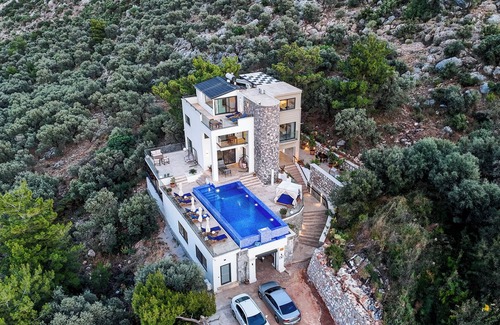 Villa in Kalkan Kisla with large 10 m infinity pool. Very quiet area with no disturbing music or city noise and the nature is your closest neighbour.
