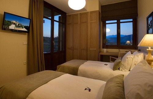 The villa can accommodate up to 6 guests, in 3 bedrooms. The master bedroom is located on the ground floor, with a king size bed, an adjacent bathroom and a large private terrace with garden furnishings. A staircase leads to the first floor, where two more bedrooms are set, one with a large double and one with two single beds, that can be attached. Each bedroom has a private veranda, from which lovely views can be enjoyed, and they are sharing a large bathroom with shower. Beds are comfortable, with high quality mattresses and crisp linen. Bathrooms are well designed and stocked with premium bath treats, hairdryer, slippers, robes and fluffy towels.
