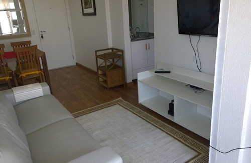 1 bedroom apartment, 1 wc, enlarged gourmet terrace, front, 12th floor, new condominium, double bed, sofa, tv, table 4 chairs, rack, terrace bench, kitchen oven, microwave refrigerator, extractor fan, double cooker oven, sitting area service, washing machine, cabinets throughout the apartment. 3 blocks from metro bras, conducive shopping bras, and downtown sao paulo, municipal market, gazo metro, cereal zone.