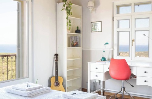 This rustic villa in the middle of scenic nature is ideal for family, group stays or retreats. The surrounding breathtaking views include ocean, mountains, tridimensional hills, evergreen fields of olive groves. Its strategic location makes the most popular beaches accessible in at the most 1h road trip. Built on top of a hill away from other houses and the noise of hotels and other tourist areas. Butterflies, birds and their singing will be your companions.
