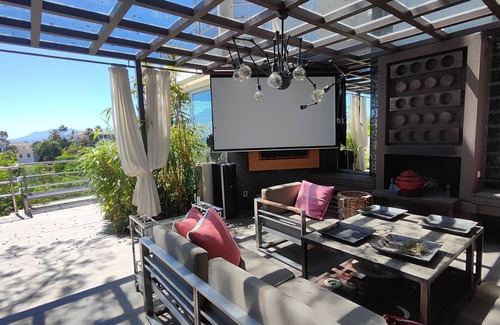 Welcome to your next unique vacation home in one of the best areas of Marbella: El Rosario! Designed by a famous French interior designer it is a really a unique catch which won't leave anyone bored. Moving throughout the villa with a camera in hands you will see each part of the villa opening to a guest from various angles: you pass through cowboys era, star wars, galaxies, ancient Egypt and mummies and then the winding stairs lead you to a Drakula's smile. Each move in this villa will let you discover something new, the villas continuously changes as you walk along it. Private garden with peaches and apricots ripening directly on the trees and picturesque views from almost everywhere will add on to the picture. -The Area- This beautiful villa is located in El Rosario: a very attractive and sought after area of Marbella. The holiday home is only a 5 minute drive to the some of the best beaches on the Costa del Sol - conveniently located within short distance to a variety of beach restaurants and clubs - including Nicki Beach Club and La Cabane and close to the very popular LUUMA restaurant.. The area is quiet and friendly with wide sandy beaches, close to shops, prestigious golf courses and just 5 km to Marbella Old Town. -The Place- Despite its very unique design this villa offers totally comfortable luxurious stay with all modern amenities. ✔ 5 Bedrooms ✔5 En-suite Bathrooms ✔Apartment with Private Kitchen and Living Room ✔Separate Access ✔WIFI ✔ BBQ ✔ Terraces 550 m2 ✔ Interior 450 m2, ✔ Private Swimming Pool, ✔Elevator ✔ Included Cleaning Service Twice a Week ✔ Private Garden 4 bedrooms, 3 of them with built-in bathrooms and one with a jacuzzi inside the bedroom, a total of 5 bathrooms and 1 toilet in the living room, garden with fruit trees and an orchard with automatic irrigation throughout the plot. 2 alarms with infrared sensors around the perimeter of the plot with exterior and interior cameras, doorbell with camera, 2 safes open parking with the possibility of sawing for a garage for 2 cars, laundry with a separate entrance, 2 storage rooms, apartment with separate entrance with bedroom, kitchen, bathroom and living room, built-in bluetooth sound system. south orientation normal pool solar panels throughout the house power elevator air conditioning on all floors water heating radiant floors on 2 floors with 1000 ml gas tank combined floors marble, tiles, parquet double 3-ton water tank glazing with air chamber covered terraces 2, open 7 2 storage rooms small cellar 1 barbecue area with built-in barbecue and terrace with a sofa area and fireplace fireplace 3 two wood burning 1 electric wifi fiber optic satellite telephone 2 alarms with infrared sensors around the perimeter of the plot with exterior and interior cameras, doorbell with camera, 2 safes open parking with the possibility of sawing for a garage for 2 cars, laundry with a separate entrance, 2 storage rooms, apartment with separate entrance with bedroom, kitchen, bathroom and living room, blu tus built-in sound system. 4 bedrooms, 3 of them with built-in bathrooms and one with a jacuzzi inside the bedroom, a total of 5 bathrooms and 1 toilet in the living room, garden with fruit trees and orchard, automatic irrigation throughout the plot, Check-in Schedule Every day from 15:00 to 20:00 Check-out schedule: 12:00 You are welcome to check in anytime but all arrivals after 20:00 pm are subject to: €100 late check in fee. Private chef – contact us for a price Other – feel free to ask us… Welcome!