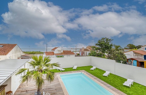 In Barre-de-Monts, this house promises you a grandiose stay! You can stay there in large numbers, with family or friends, for guaranteed moments of conviviality. Completely renovated and tastefully decorated, you will not lack anything to make your stay a success. Its garden and swimming pool, open from 15 April to 30 September, are an invitation to relax and enjoy the iodised air offered by the Lumière coast. And the highlight: an unobstructed view of the Ocean!It is a 250 m² house, welcoming and completely renovated, located on the beachfront with sea view on the upper floor, situated in La Barre-de-Monts. It has 6 bedrooms and can accommodate up to 22 people. The rental has a fenced garden, with a terrace equipped with garden furniture. Within the house itself, you will find internet access via Wi-Fi, a hairdryer, a cot with bars and a television in each bedroom. As for the open-plan kitchen, it is equipped with induction hobs, a fridge and freezer, a microwave, an oven, a washing machine, a tumble dryer, a dishwasher, a coffee maker, a deep fryer, a toaster, a kettle and a citrus press.Located in an ideal area for families and near the sea, the rental is located at:- 260 m from La Barre de Monts beach- 500 m from the seaside resort of Fromentine- 650 m from the supermarket "Intermarché SUPER"- 700 m from the restaurant "Le Poisson Rouge"- 700 m from the restaurant "L'Escale"- 750 m from the Grande côte beach- 1 km from the centre of Fromentine- 9 km from the theme park "Parc de loisirs du Gois"- 14 km from the Golf domain "de Saint-Jean-de-Monts"- 15 km from the supermarket "Super U"- 18 km from the water park "Océanile Parc Aquatique"- 23 km from Challans train station- 60 km from Nantes Atlantique airportAuthentic maritime village, you will be able to travel between the Breton Vendéen Marsh, the Vendée islands and the maritime culture that its inhabitants will be proud to transmit to you. In La Barre-de-Monts, the Ocean blends with the marshes to offer you breathtaking landscapes. Do not miss the sunsets at Fromentine, magical moments await you!The swimming pool is heated and open from 15 April to 30 September.This accommodation benefits from a concierge service with a team available throughout the stay for personalised services.This furnished accommodation has a Wi-Fi connection.The furnished accommodation is not accessible to people with reduced mobility.Animals are not allowed in this rental.The accommodation tax will be added to the rental amount and must be paid in advance of your stay.REF : hoomy10714