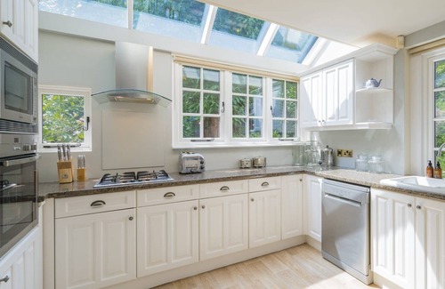 • Well-appointed kitchen with cutlery, plates, bowls, mugs for tea and coffee, glasses, pots & pans, chopping board and cooking essentials