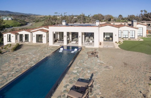This compound features approx. 11,0000 sq. ft. with the finest materials and no expense spared. Features include an exquisitely furnished spectacular great room anchored by 2 Huge fireplaces, Master suite with his and hers baths overlooking the Pacific Ocean, Chefs kitchen, Theater Room, game room, wine cellar, total of 6 guest suites, 11 bathrooms & Gym. 6 Person Hummer Golf Cart, an exquisite entertainers Pool & Spa, outdoor kitchen with bbq, pizza oven and outdoor fireplaces make it your own private resort. One of a kind location and privacy.