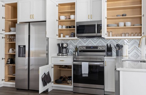 Full kitchen stocked with everything you could need to prepare a great meal. Complimentary local coffee, creamer, and sugar, are provided alongside a drip coffee maker.