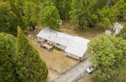 Enjoy an amazing mountain retreat from this newly renovated home on the Sierra Vista Scenic Byway. This property has stocked fishing ponds, an organic apple orchard, and onsite waterfalls and trails ready to be explored. Whether you spend your day checking out surrounding areas like Bass Lake or Yosemite, or you choose to stay here at NOMA, we know you will enjoy this comfy home – complete with three spacious rooms, a kitchen, and Wifi.