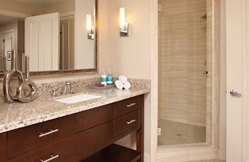 Two-bedroom villas feature full kitchens with granite counters and stainless steel appliances. Spacious, furnished balconies and terraces allow you to enjoy the California sun whenever you wish. Desert Springs Villas II's bedrooms offer private entrances, while the bathrooms boast over-sized soaking tubs and walk-in showers. In-room washer and dryer and complimentary Wi-Fi add to the conveniences the resort has to offer.