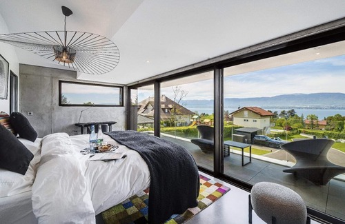 This exquisite and enchanting luxurious villa, is a residence that epitomizes opulence, elegance, and the art of fine living. Nestled in the picturesque shores of the Geneva lake region, this architectural masterpiece is a testament to art-de vivre and refined taste.