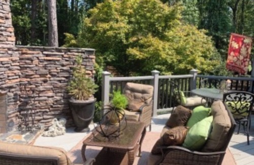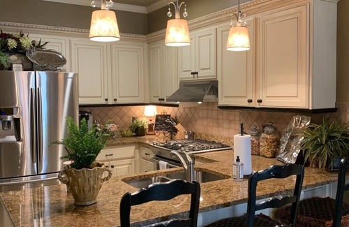 2000 square foot home in gated community..80” TV in Living room, dining room, equipped kitchen with breakfast area, back deck with fireplace, smoker (Recteq) & Gas grill. Backyard with view of golf course. Community pool