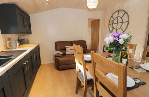 Math (Lodge 3) is a single-storey lodge with two bedrooms, including a king-size with Smart TV and en-suite shower room and a zip/link king-size which can be 2’6” twin on request, along with a shower room. The living areas include an open-plan living space with a kitchen, dining area and sitting area and a sitting room. Appliances include an electric oven and hob, microwave, fridge, freezer, and dishwasher. For entertainment, there are two Smart TVs and WiFi. Outside, there is designated, off-road parking for two cars and a garden with a patio with furniture and a barbecue with steps to an elevated decked area with a drinks fridge and private hot tub. One well-behaved dog is welcome. Highchair and travel cot available on request. Sorry, this is a smoke-free lodge. You can find a shop and pub within 3.2 miles or less. Fuel, power, bed linen, and towels are all included in the price. Experience the North Wales countryside with a stay at Math (Lodge 3). Note: There are steps to get up to the decking and inside. Note: This property only accepts check-ins and check outs on a Monday or Friday