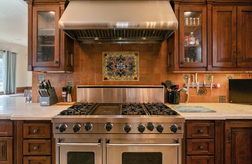 Gourmet Kitchen and Living Spaces: Prepare meals in a fully equipped kitchen with built in mahogany crafted bar. Gather in the spacious living room with comfortable sofas, smart tv, and piano. Dine in the elegant dining room, with seating for 8.