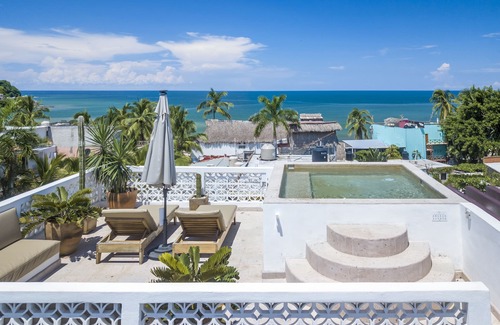 Mi Casita is located in the heart of the village of Sayulita just above the shop Révolucion Del Sueño is an incredible location, close to all activities necessary for your well being, beach, surf, shopping, restaurant, bar, night life You will appreciate The ambiance of the terrace, the cozy comfort of Mi Casita and its small services ! and its comfortable rooftop , enjoy a 360 degree view of Sayulita , ocean view and relax in our mini salted pool jacuzzi .Mi Casita measures 90 m2, we are on the second floor of the Revolucion del Sueño store, located in the heart of Sayulita village, best location you can not, everything you need is here below Mi Casita, you do not need a car, plaza and the beach are one block away.