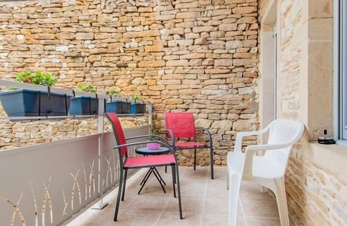 Lyliane welcomes you to a beautiful traditional 18th century "town" residence full of history & fully renovated - enhanced by a careful contemporary "architectural reinterpretation" - located in a quiet area on the edge of a lane, in the very heart of a picturesque wine-growing village in the peri-urban Mâcon countryside, full of charm & perfectly preserved (notable heritage to discover on site). Total tranquility adjoining an elegant church of Roman origin, a stone's throw from the vineyards & a 10 ha public landscaped park with rare century-old trees (Virginia tulip tree, Lebanese cedar, Andalusian fir, giant sequoia, calocedron, black pine, etc.), the work of the famous gardener Le Nôtre (creator of the gardens of Versailles), where a 16th century castle stands, today the literal "green lung" of the town (with a children's playground). Surrounded by vineyards & gentle meadows, nestled between two vast wild forests (to explore on foot or by mountain bike), Hurigny benefits from a bucolic, hilly countryside setting, totally peaceful, combining agriculture & nature. Spacious gîte with very good comfort. Lovely contemporary character, enhanced by the presence of the imposing stone & brick fireplace mantel, beams & a stone wall of the original building. Zen & very gentle atmosphere. Lots of charm. Intimate enclosed courtyard (electric gate) converted into a terrace (well shaded in summer) & sheltered balcony. Composition: Semi-detached village house (including the owner's home at the back / total independence without vis-à-vis). Wifi. Electric heating + wood stove. Ground floor: living room-kitchen-lounge (double sofa bed 140x190cm as an extra), separate toilet, laundry room. 1st floor: 3 bedrooms (double bed 160x200cm / 2 single beds 90x190cm / double bed 160x200cm) including 1 with private bathroom (shower/WC), bathroom (shower), separate WC. Terrace on enclosed courtyard + private sheltered balcony. Easy free public parking. Supermarkets 6 km. All amenities 7 km.