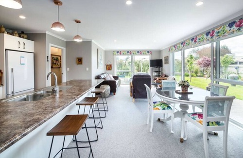 Quiet location at end of cul-de-sac at southern end of Greytown. North facing with full day sun in the open plan lounge kitchen & dining. Private with an approximate 10 minute walk to shops, restaurants, & cafes. 2mins by car and to the Rail Trail. Off street parking and free wifi, TV also. Welcome to my garden of variation, colour and fragrance there are lemons if required for a sneaky G&T.