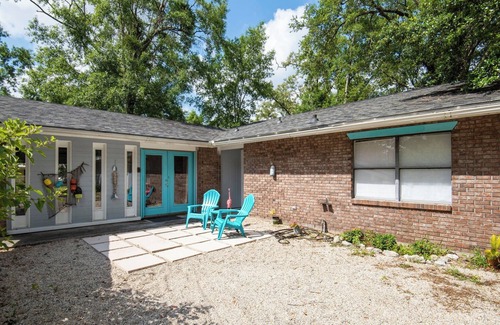 Eclectic & Stylish Mid Century Ranch style-Beach house. Just 8 blocks from the Waveland Beach with a salt water pool. The house is on a dead end street on almost an acre of land. Very private with a huge circle drive out front for parking.