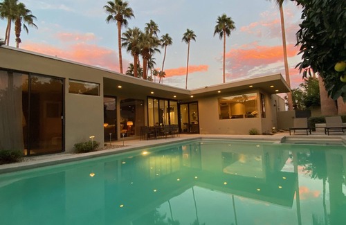 Best-rates for the Mid-Century Modern Estate starts from $459 per night with includes Barbecue/Outdoor Cooking, Kitchen, Laundry, Parking, Private Pool, Internet, Air Conditioner, Pool, TV, Security/Safety At SunSki Resorts, we pair every traveler with their perfect accommodation, complete with all necessary facilities. Whether you're traveling with a group, friends, family, or pets, we have the ideal rental for you.