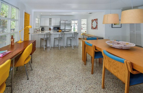 Designer-owned, 3 bedroom property featuring modern architecture, mid-century inspired furnishings and original terrazzo floor in fabulous Sarasota location; minutes to famous beaches, restaurants and activities.