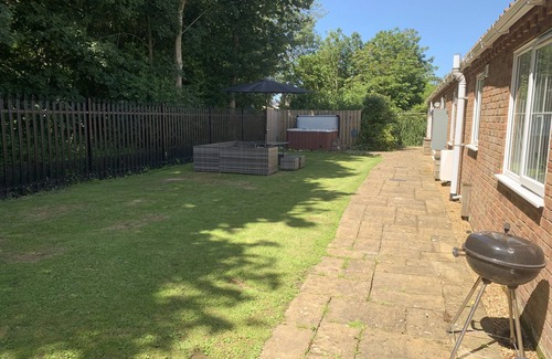 Amenities: Oil underfloor heating. Electric oven and hob, microwave, fridge/freezer, washing machine, tumble dryer, dishwasher, TV with Freeview, DVD, CD/radio, selection of books, games and DVDs. Fuel and power inc. in rent. Bed linen and towels inc. in rent. Cot and highchair. Off road parking for 3 cars. Enclosed lawned garden with decking, furniture, BBQ and hot tub. Three well-behaved pets welcome. Sorry, no smoking. Shop 2 miles, pub 2 mins walk. Note: Although all wheelchair friendly, there are 3 steps up to the hot tub.