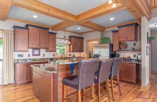 ENCHANTED EVENINGS & SUNNY ADVENTURES IN MAGGIE VALLEY! Perched at 4,200ft, Big Bear Lodge offers majestic views of the Smoky/Blue Ridge Mountains. A scenic 20-minute drive to Maggie Valley/Waynesville, Big Bear Lodge includes an open floor plan, beautiful hardwood floors, a stone gas fireplace, French doors opening to the expansive covered deck. The main deck includes a fire table, amazing views, and peaceful seclusion. The kitchen is a Chef's dream! You might even be fortunate to catch a glimpse of our wildlife neighbors; deer, elk, groundhogs and bears.