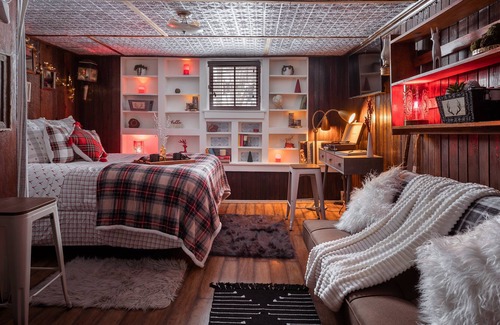 This authentic and delectably decorated mountain cabin for two people will steal your heart. It features a comfortable King bed, Smart TV, comfy couch, Internet and dedicated workspace for those who would like to write or get some work done in between sessions on the mountain.