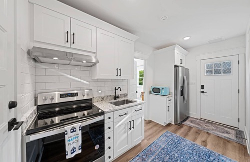 Welcome to the "Mini Farm House" just 3.8 miles to Wrightsville Beach! You will love the new stylish renovation. This comfortable coastal farmhouse style efficiency is walking and biking distance to Mayfaire Town Center, Drift Coffee & Cross City Bike Trail. The bedroom/living combo is spacious with a bistro table. The kitchen features a full size refrigerator and range. The efficiency is attached to 3 bedroom home. Only shared space is driveway.