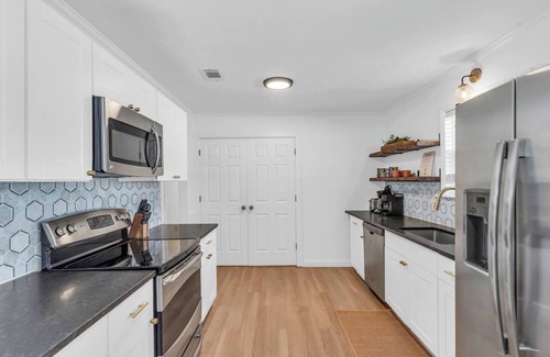 Welcome to House of Kaktos by Wander and Roam Rentals! This desert-inspired retreat sleeps 8 and is packed with fun—air hockey, Pac-Man arcade, mini golf, fire pit, hammock, hot tub, and more. Each themed bedroom has a smart TV. Enjoy high-speed Wi-Fi, a coffee station, washer/dryer, free parking, and a Pack 'n Play. Just 6 miles to Wrightsville Beach, 7 to downtown, 4 to UNCW, and 12 to Carolina Beach—your perfect Wilmington getaway!