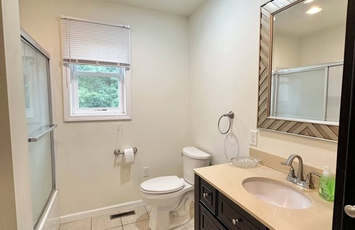 Escape to this nice apartment in picturesque Danville. This cozy retreat features 1 bedroom with 1 queen bed and 2 twin beds, a fully equipped bathroom with a hair dryer, and convenient amenities like a washing machine, iron, AC, heating, WiFi and a garage. It's easy to see why you'll be able to unwind at our place.